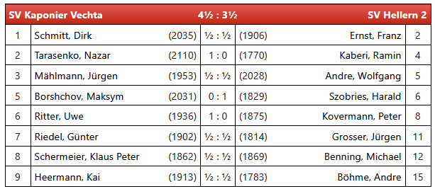 „… aber leider keine Punkte im Aufeinandertreffen gegen die erste Mannschaft aus Vechta. Es war geplant, dass unsere Spieler Erfahrungen sammeln sollten. Deshalb wurde rotiert und weitere Spieler kamen zum Zuge. Die Kaponier trat mit einer Riege erfahrener Spieler an, und da gab es für unsere Mannschaft nichts Zählbares zu holen“, lautete das Fazit von Ramin Kaberi, der dennoch von einem sehenswerten Wettkampf berichtete