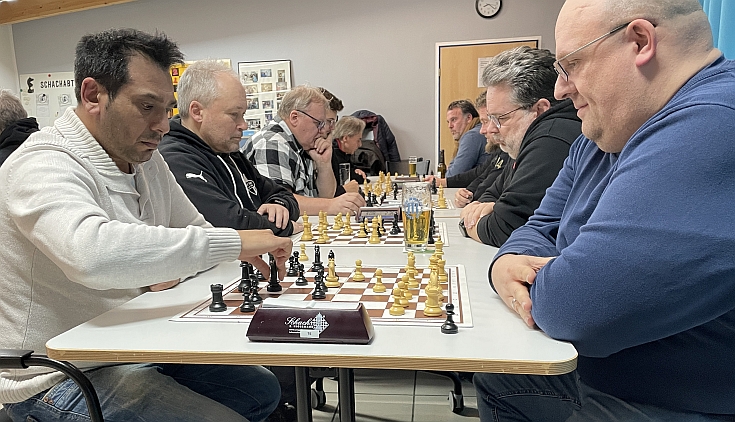 Unbeirrt gingen Hannes und Ingo trotzdem ihren Weg. Favoritenschreck und turnierentscheidend hätte dann unser Ramin werden können. Nachdem Ramin unseren Ingo glanzvoll völlig überspielte und ein deutliches Zeitplus hatte kamen ihm Skrupel. Das Matt war auf dem Brett, aber Ramin sah das Motiv dann nicht und verlor dann tragisch. Trotzdem ganz starke Partie.